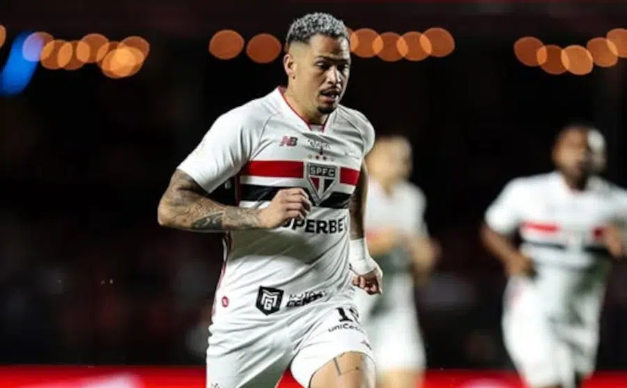 1 a 0! Danielzinho abriu com Lucas Ramon na direita, e logo depois o lateral acionou Artur. O ponta passou pela marcação de Diogo Barbosa, cruza para a grande área vindo de trás, e Luciano se antecipa e desvia no contrapé de Pedro Rocha. Placar aberto no Morumbis.