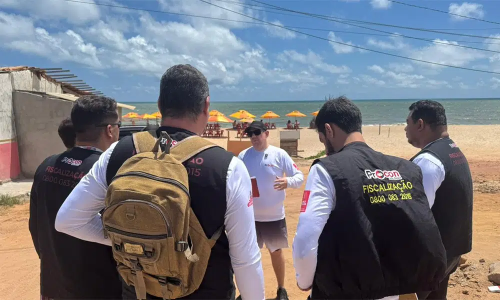 Os fiscais do Procon de João Pessoa estão percorrendo os estabelecimentos comerciais da orla da capital paraibana, neste sábado (10) e domingo (11), como parte das ações da primeira etapa da ‘Operação Verão 2026’. Nas visitas preventivas e educativas, as equipes entregam o check list de leis aos proprietários de bares, restaurantes, quiosques e similares instalados nas praias. Na ocasião, também é distribuída a Cartilha Dicas de Verão aos consumidores que estão frequentando a orla.