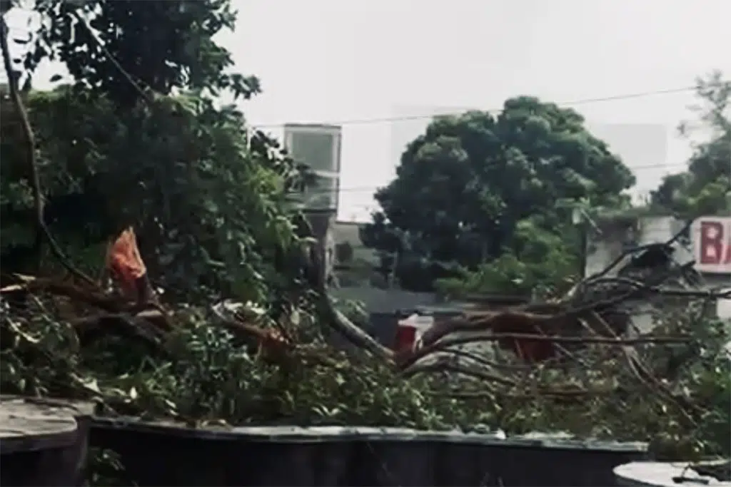 Conforme a empresa, “muitas árvores caíram sobre a rede elétrica, derrubando postes e fios, além de objetos que foram arremessados e atingiram as estruturas.