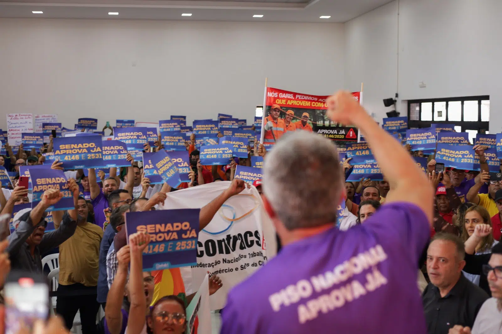 O encontro reuniu diversas autoridades. Entre os destaques, os senadores Veneziano Vital e Efraim Filho, que declararam publicamente voto favorável aos pisos das duas categorias. A senadora Daniella Ribeiro também entrou em contato com o SINTAB durante a realização do evento e garantiu apoio às propostas. Os Projetos de Lei nº 2.531/2021 (Piso do Apoio) e nº 4.041/2020 (Piso dos Garis) estão em tramitação no Senado Federal e, se aprovados, seguem para sanção presidencial.