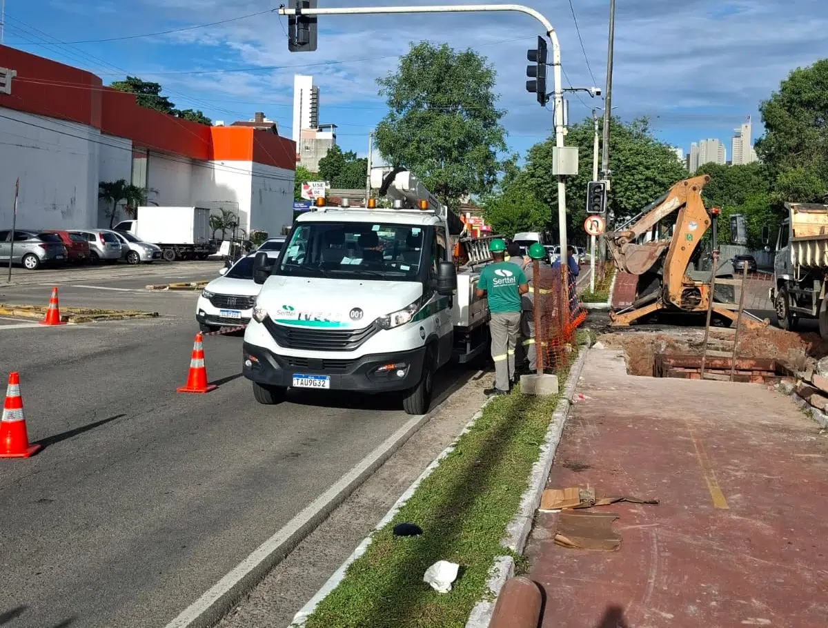 Com isso, houve o afunilamento de um dos principais corredores viários da cidade, impactando diretamente o fluxo de veículos. Para minimizar os transtornos e melhorar a fluidez do trânsito, o semáforo da área foi temporariamente desativado e agentes de trânsito estarão presentes nos horários de maior movimento para orientar os condutores.