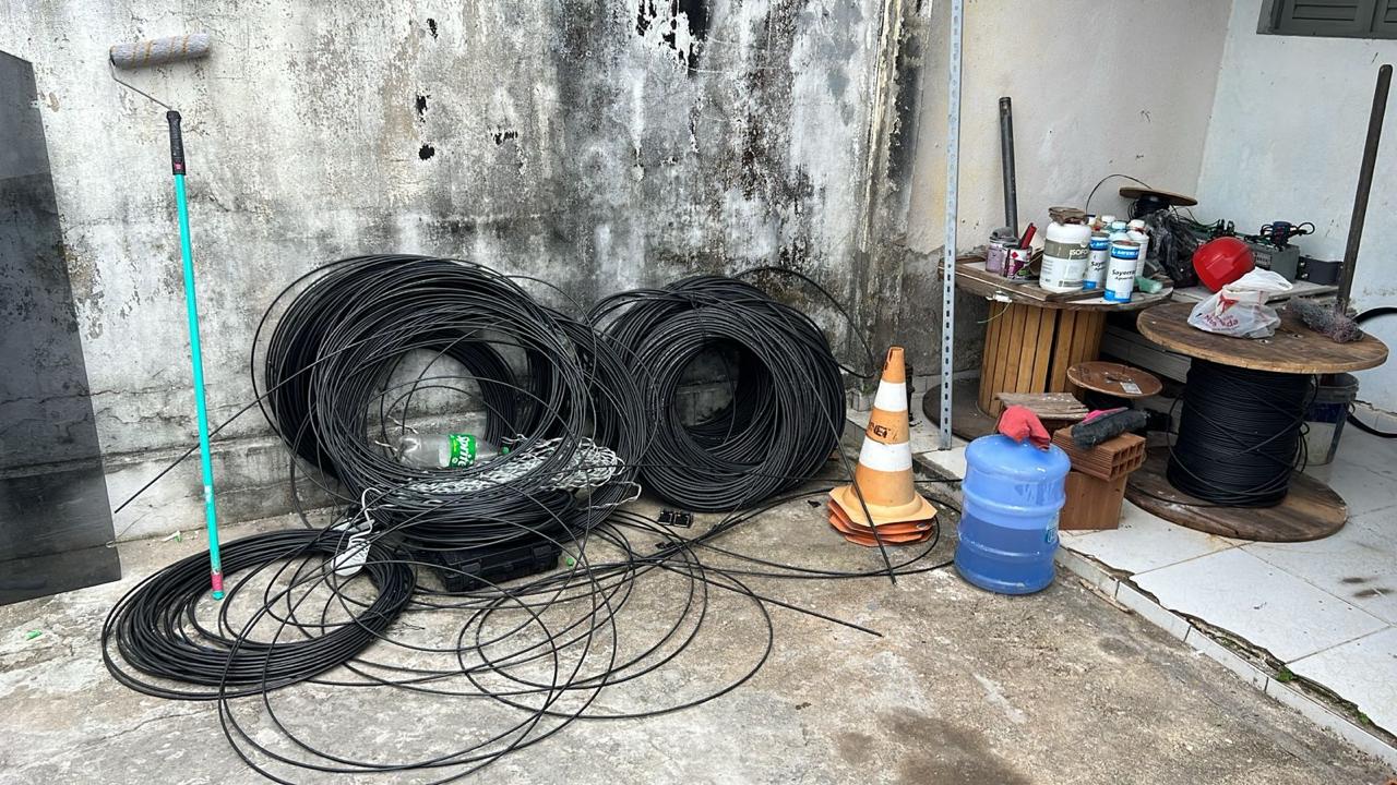 Durante a fiscalização, foram apreendidos equipamentos utilizados na prestação irregular dos serviços, além de grande quantidade de cabos de internet oriundos de furtos praticados contra as empresas Claro e Brisanet — material cuja comercialização e utilização têm impulsionado uma cadeia criminosa responsável por interrupções de serviços essenciais e elevados prejuízos à população.